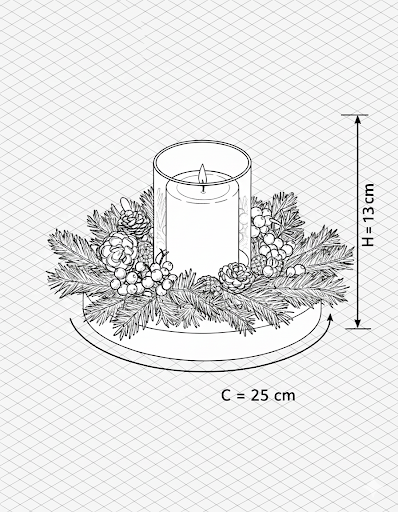 | Arreglo Completo | N/A cm de diámetro x N/A cm de alto | Pino artificial, esferas, bayas, base de madera |