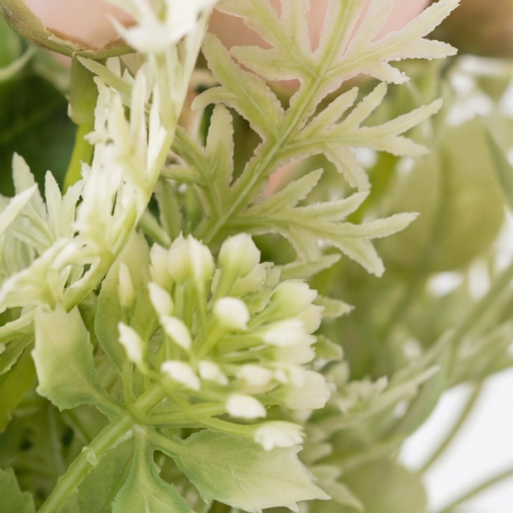 Este elegante diseño combina la suavidad del rosa con la pureza del blanco, creando una pieza que aporta frescura y sofisticación a cualquier ambiente. Ideal para decorar tu hogar, oficina o como un regalo especial, este arreglo es perfecto para quienes buscan un toque de naturaleza sin el mantenimiento de las flores naturales.