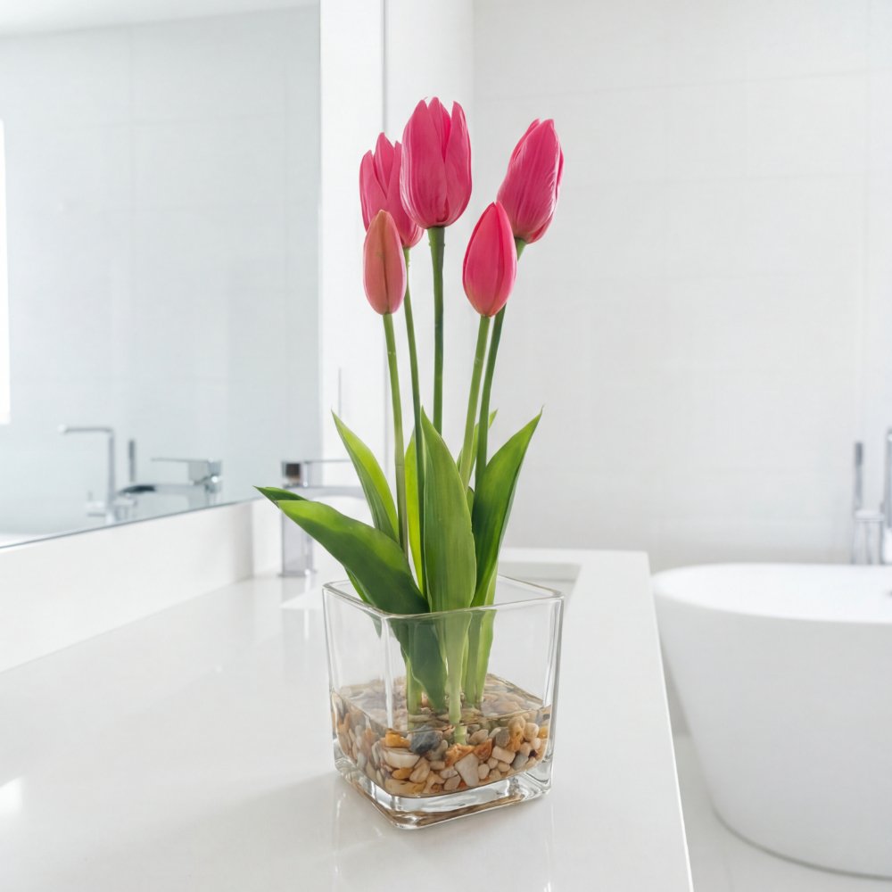 Arreglo Floral Artificial de Tulipán Fucsia para Decoración de Hogar